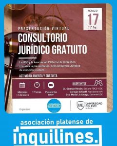(17/03/2021) Este miércoles 17 de marzo, comenzó a funcionar un consultorio jurídico gratuito para inquilinos. El fin de este es asesorar a aquellas personas que lo necesiten luego del fin del congelamiento de los precios de los alquileres. Esta iniciativa está a cargo de la asociacion de inquilines la plata, en conjunto con la Universidad del Este.