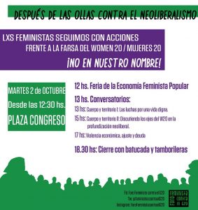 «El W-20 es una farsa. Lo crearon hace dos años para darle legitimidad al G-20. En Argentina es liderado por un grupo de empresarias pero lo que les interesa en el fondo es la inclusión en el mercado financiero de ellas, tomando las consignas de inclusión de movimientos populares».