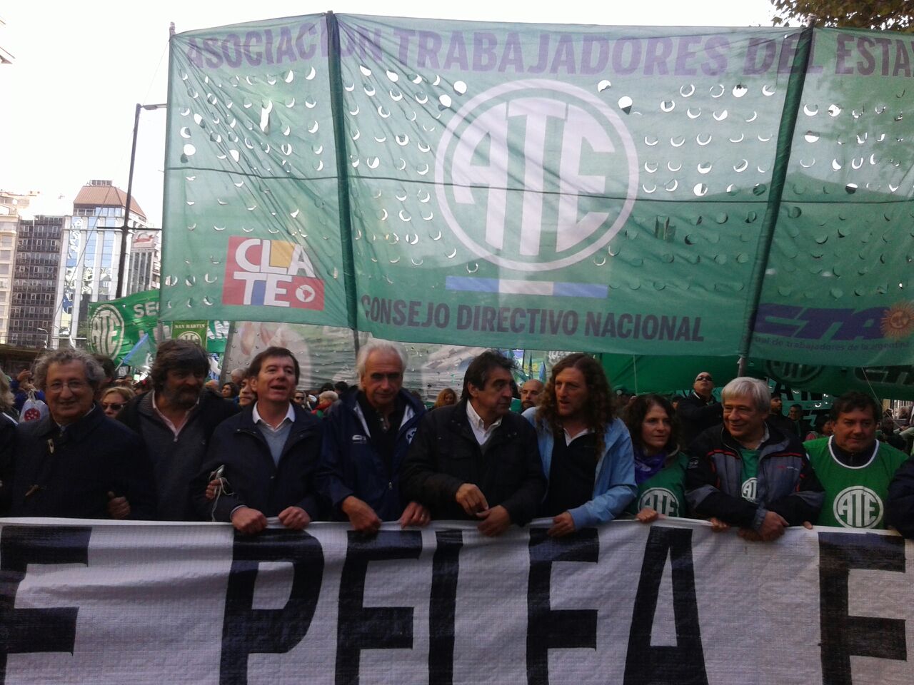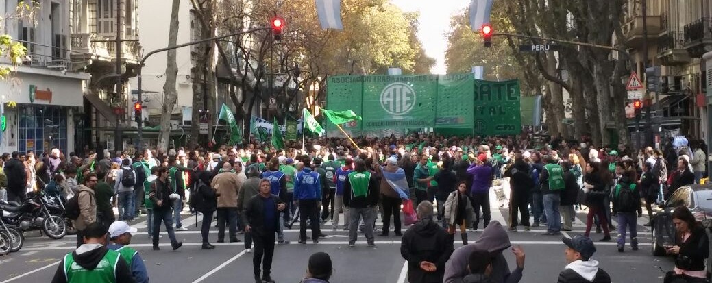 “Este acto de unidad de todos los trabajadores es la mejor respuesta que podemos darle al presidente Mauricio Macri«, expresó el secretario general de ATE Nacional Hugo «Cachorro» Godoy y agregó que en la previa a la jornada de paro y movilización de hoy se realizaron asamblea y acciones en distintos puntos del país. «Hoy en la provincia de Buenos Aires los docentes de SUTEBA, los profesionales de la salud y los judiciales también están haciendo un parazo”, agregó.