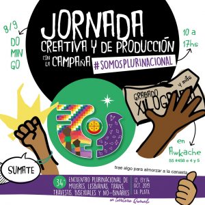 (05/09/2019) Este domingo 8 de septiembre de 10 a 17hs en AwkaChe (55 e/ 4 y 5 #458) se realizará la jornada creativa y de producción #SomosPlurinacional. En La Flecha, la muralista y organizadora del evento, María Paz Santos Morrón, nos cuenta cómo se prepara la ciudad para el 34° Encuentro Plurinacional de Mujeres, Lesbianas, Trans, Travestis, bisexuales y no-binaries.