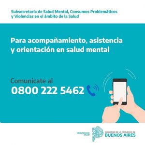 Para recibir acompañar, asistir y orientar en salud mental podes comunicarte al 0800-222-5462 la cantidad de veces que quieras.