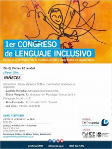 (11-04-19) En la mañana de Caídas del Catre hablamos con Gabriela Mansilla, mamá de Luana, la primera niña trans en tener un DNI sin proceso judicial, por el 1er Congreso de Lenguaje Inclusivo que inicia hoy en el Edificio Karakachoff de la UNLP, organizado por la Defensoría de la Provincia de Buenos Aires y auspiciado por la Facultad de Humanidades.