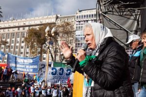 Por su parte, Nora Cortiñas, referente de Madres de Plaza de Mayo Línea Fundadora, habló frente a la multitud reunida en Plaza de Mayo, denunció la indiferencia del Macri a los reclamos populares y destacó que «El presidente es Robin Hood al revés: le roba a los pobres para darle a los ricos».