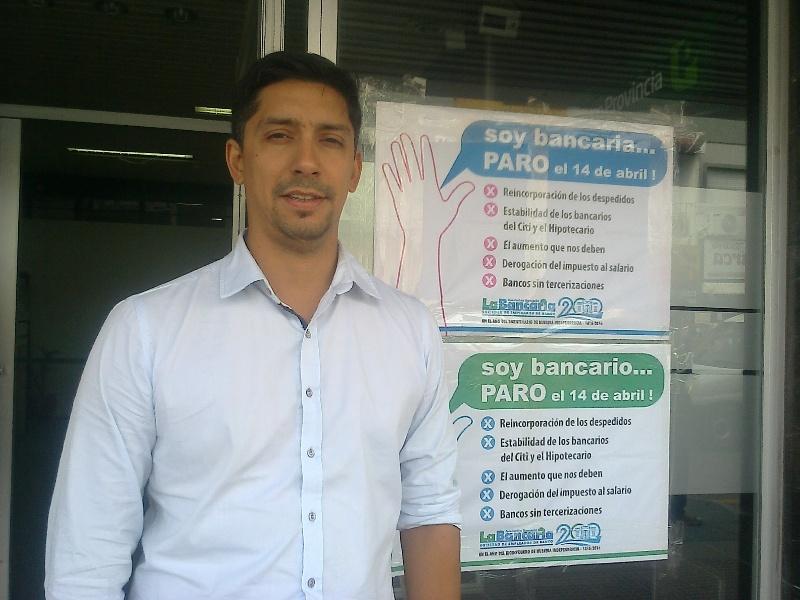 «La medida se fuerza de hoy resulta de la no respuesta de las Cámaras de los distintos bancos, al pedido de reincorporación de los compañeros cesanteados del Banco Central, del Banco Provincia y del Banco Hipotecario. Y lo que ofrecen de aumento es menos de lo esperado y desconocen algunos items conseguidos en las paritarias anteriores».