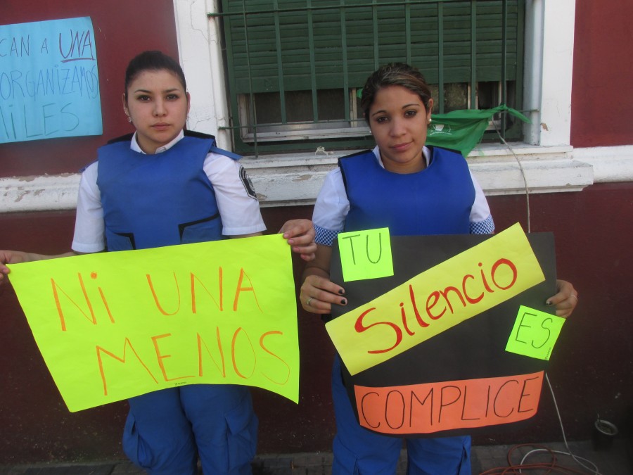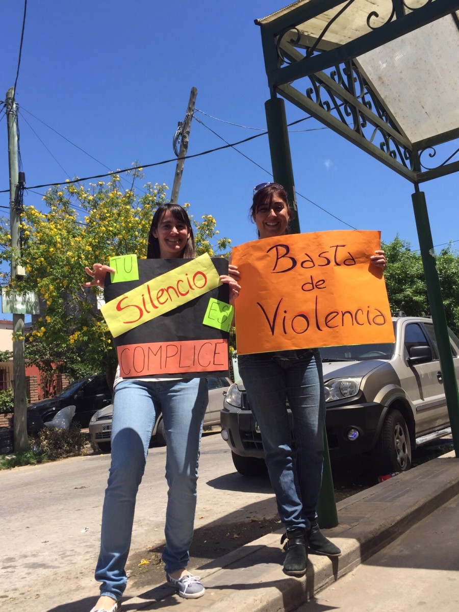 Desde la radio abierta se convocó a los vecinos y a la comunidad del hospital a fotografiarse con carteles que mostraban distintas consignas como “ni una menos”, “basta de violencia y “tu silencio es cómplice” en repudio a la violencia de género y a participar más tarde de la marcha convocada en la Plaza Moreno en el marco de este día.