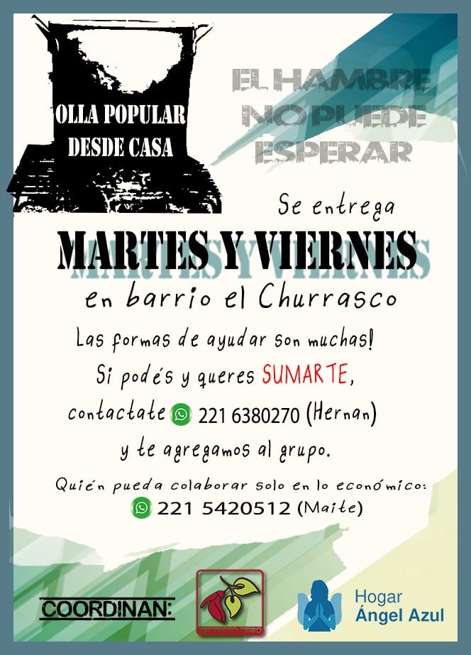 «Nos encontramos que ni siquiera podemos hacer una olla popular por el tema del aislamiento. Lo que hicimos es copiar una idea, que es que familias que tengan una mejor economía actual, puedan cocinar, armar unas viandas y nosotros con los permisos correspondientes, hagamos el reparto de esas viandas».